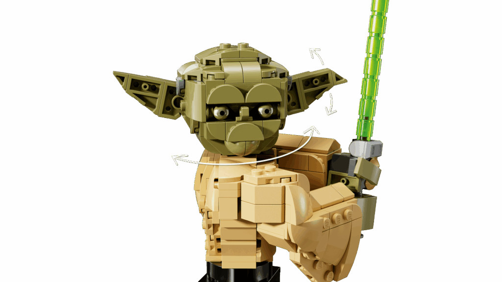 Die Yoda-Büste ist beweglich gebaut – Kopf und Ohren lassen sich positionieren.
